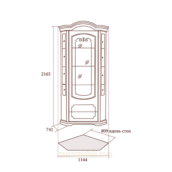 Размер витрины вдоль стен: 809 мм.
