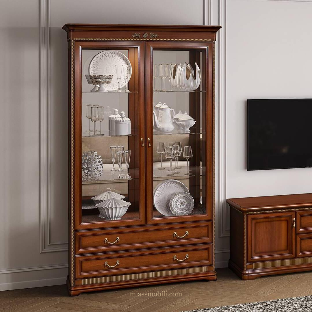 Шкаф 2-х дв для посуды с зеркалом Joconda орех купить в Екатеринбурге