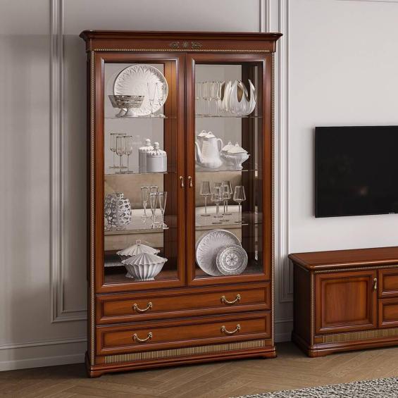 Шкаф 2-х дв. для посуды с зеркалом Joconda орех купить в Екатеринбурге