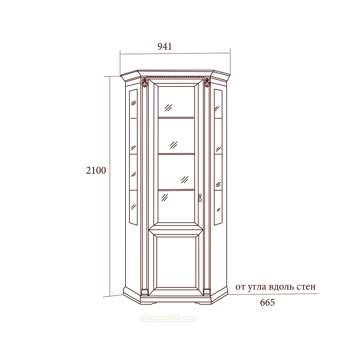 Шкаф для посуды угловой Лоренцо вишня Lorenzo вишня купить в Екатеринбурге
