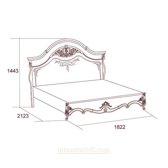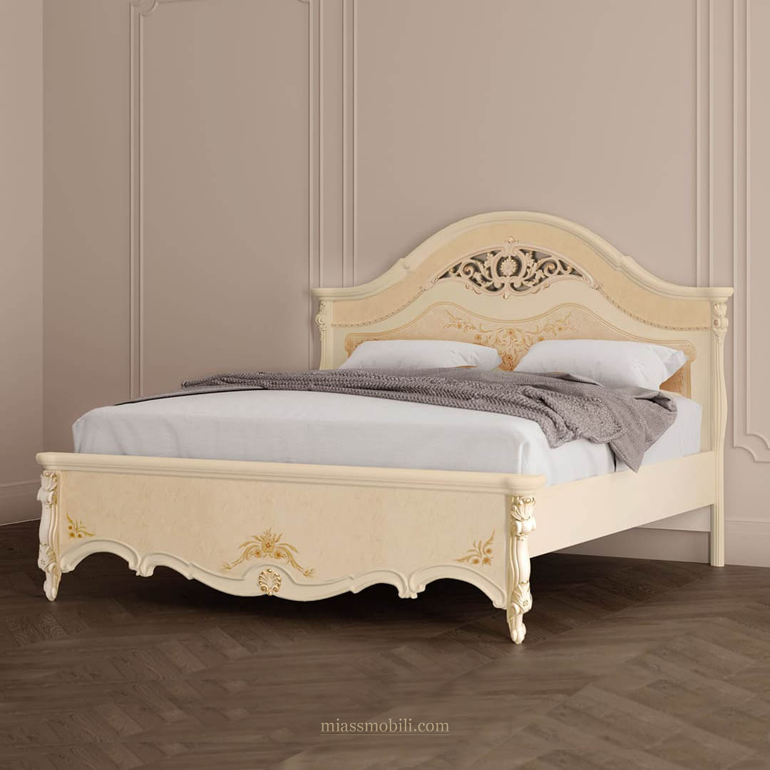 В отделке двуспальной кровати используются декоративные элементы с позолотой. Головная и ножная спинки украшены художественная ручной росписью.